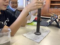 6年生理科で海底に堆積する土砂の様子を実験しました。土砂を5回投入すると5層の地層ができました。