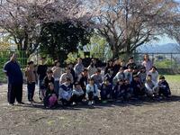 桜の咲いているうちに、6年生が写真撮影をしていました。桜も子供たちの進級を祝っているようです。