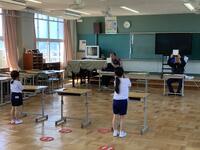 午後は、2~6年生の登校でした。登校後、新たに本校に異動してきた教職員の着任式を行いました。