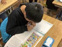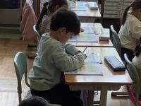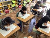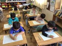 1文字1文字を確かめながらしっかりていねいに書いていきます。落ち着いて集中しながら書き進めている1年生でした。