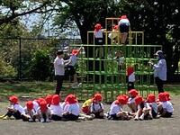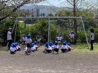 みんなで準備体操をした後、クラスごとに、遊具を使った運動遊び、ボールを使った運動遊び、鉄棒を使った運動遊びに取り組みました。