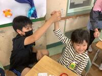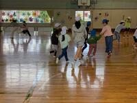 ペアで手をつないで行った「手つなぎ鬼」、ペアからスタートした「じゃんけん列車」で楽しみました。