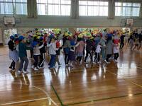 先日のペアの顔合わせに続いて、1年生と6年生がペアで遊んで仲良くなるための集会を開きました。