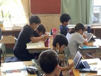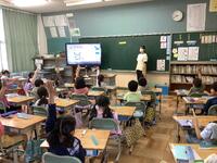 今日は「学校のよごれウォッチング」と題して、校内の汚れの状況を調べ、汚れの種類や原因を子供たちが調べ、1人1台端末のシートにまとめていきました。日頃、気がつかない汚れにも着目している子供たちでした。汚れにあったそうじの仕方や身の回りを快適にしていくことにも考えを巡らせていました。
