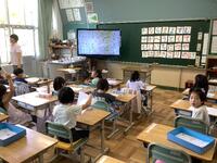 今日は、2年生が外国語活動に取り組む日でした。2年生は、年間3回の外国語活動に予備時数を使って取り組んでいきます。