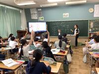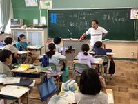今日は、ALTの先生が自己紹介をしました。先生の趣味を聞き、迫力ある映像に子供たちは興味津々でした。