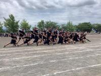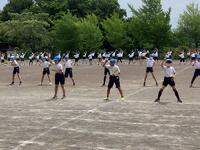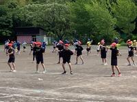 3・4年生の体育の授業の様子です。運動会の団体演技種目の「ぼくたち・わたしたちのNo.1!!」の練習に取り組んでいました。