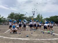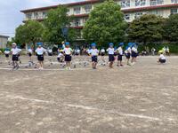 3年生の体育の授業の様子です。運動会で3年生が行う団体競技「巻き起こせ!山田小トルネード」の練習に取り組んでいました。