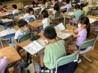 少しずつ1人1台端末を使って、できることが増えている1年生です。夏休みには、御家庭でお子さんと一緒に1人1台端末を使ってみてください。