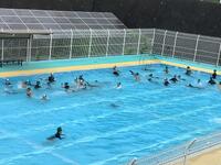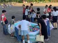 実行委員の司会で会を進行し、プールの浮きマットを使ったリレーを行ったり、子供たちが「洗濯機」と読んでいるプールに流れの渦をつくったりして楽しんでいました。