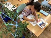 子供たちは、野菜の様子をしっかり観察していました。先生から観察の「名人」の称号をもらっている子もいました。