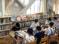今日の学習では、自分の気になるユニバーサルデザインについて調べる活動を図書室で行っていました。図書室の本を利用したり、1人1台端末を活用したりして、調べを進めていきます。