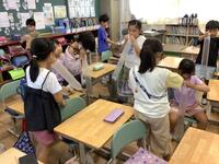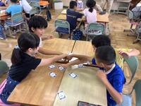 文を言い慣れる練習をして、カードゲームに取り組んでいました。先生が言った好きなもののカードをとるゲームです。子供たちは、ノリノリでゲームに取り組んでいました。楽しみながら学びを深めている3年生でした。