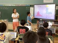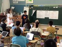 6年生の算数の授業の様子です。6年部では、資料の整理の単元で研修を進め、互いに授業を見あって、授業の工夫の効果や子供たちの学びの深まりを確認しています。