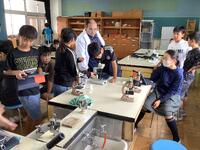 てこのつりあいを活用し、手作りはかり挑戦していました。