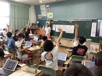 3年生の社会の授業の様子です。「なぜお客さんがたくさん来るのか」という課題を解決するために、スーパーマーケット見学をもとにして、子供たちが追究を深めています。