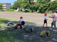 うんていでは前より進める数が増えていたり、タイヤ跳びの跳び方が上手になっていたり、登り棒につかまっている時間が長くなっていたりしました。確かに成長してきている1年生です。