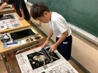 4年生の図画工作の授業の様子です。夏休み前に彫刻刀を使って彫りの作業を進めていた木版画の刷りの作業に取り組んでいました。