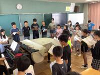 6年生「音楽」の様子です。合唱をしていました。ピアノのまわりに子供たちが集まり、声を響かせていました。