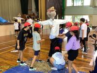 田植えをさせてもらった山田川自然の里にある棚田の稲を守るためのかかし作りに5年生がチャレンジしました。講師は、「稲作体験」同様、山田川グリーンツーリズム研究会の山田川自然の里ボランティアの皆様、三島市役所農と食のまちづくり課の方が務めてくださいました。