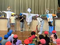 今日は、かさぶくろロケットをつくろうと取り組んでいました。かさぶくろに空気を入れて本体にし、画用紙の翼を付けて飛ぶようにしていきます。子供たちは、思い思いに工夫しながらつくっていました。