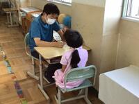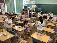 1年生の音楽の授業の様子です。鍵盤ハーモニカを使って、「ど」のおとであそぼうと学習に取り組んでいました。「ど」の音だけで構成されている「まほうのど」の曲で吹き方の練習をしています。
