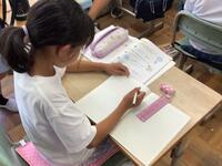 さらに、他の2本の直線の場合でも確かめていました。途中、互いの意見交換を行いながら、自分たちで学ぼうとしています。平行な2本の直線の性質を自分たちで見つけ出している4年生でした。