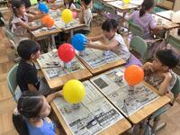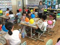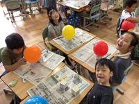 この時間は風船をふくらませていました。教室に訪れたときには、風船が膨らみ、次への準備、という状況。