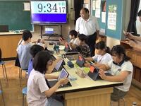 6年生の理科の授業の様子です。4月からこれまでの理科の授業を振り返る活動を行っていました。1人1台端末を活用して、子供たちが入力をしていきます。