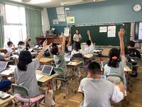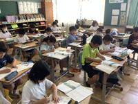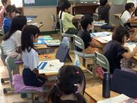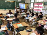 今日は、静東教育事務所地域支援課の指導監と教育主査を招いて、山田小学校全体で国語の授業を中心に授業研究を行いました。2ー2では、山田小の教員全員が集まって授業を参観する国語の研究授業を行っています。
