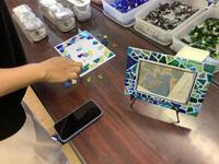 講師の先生の指導のもと、種類豊富なタイルの中から好きなタイルを選び、写真立てをつくりました。仕上がりはとてもすてきなアート作品となりました。