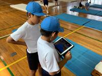 自分の技の出来具合を確認するために1人1台端末を使って、友だちに技の様子を撮影してもらって、自分で確認していきました。