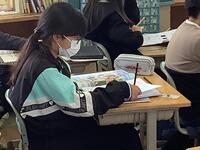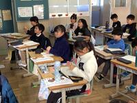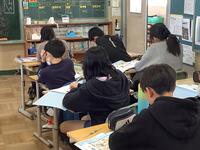 4年生「国語」の様子です。年賀状をかいていました。「送って楽しい、もらってうれしい年賀状」ということを意識しての年賀状です。新年を迎える挨拶の言葉、来年の干支をモチーフにしたデザインと一枚の中に、自分の思いを込めることができます。素敵な年賀状をかくことができたでしょうか。