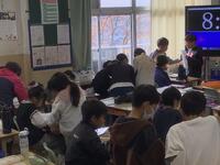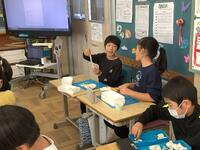 4年生「算数」の様子です。小数のかけ算の学習をしていました。4.5×3の求め方についてみんなで考えていました。問題文には、4.5Lとあるので、45dLにすると整数の知識を使って計算できます。このことに気付き、学びを深めていました。知っている知識を活用する、算数の大切な学び方ができていました。