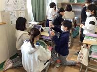 1年生「体育」の様子です。なわとび運動に取り組んでいました。前跳び、後ろ跳び、かけ足跳び等に挑戦しています。二人組になって取り組んでいます。「がんばれ!」と声を掛け合う姿にも1年生の成長を感じます。なわとび運動は、冬の風物詩の一つですね。自分の記録に挑戦です。最初は難しくても、練習を繰り返すことで、だんだんとこつをつかんできます。毎日練習です。