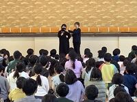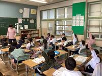 5年生が、アスルクラロ沼津の新体操のコーチを講師に迎えた「全力教室」のマット運動の指導を受けました。クラスごとに1時間ずつの指導です。動きをよく見ること、自分からチャレンジしてほしいこと、そして、全力教室を楽しんでほしいことを最初に子供たちへ伝えられました。