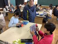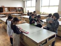 5年生「理科」の様子です。電磁石の学習です。「コイルモーターを回す」ことに挑戦していました。今日は、エナメル線でコイルを作っていました。コイルを巻く、というのも難しいです。「できない!」と言っている子もいました。そんな中、得意な子もいます。こつを伝えながら、コイルづくりを行っていました。これができたら、いよいよコイルモーターに挑戦です。