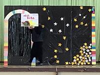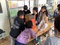 昼休みに、本校のボランティア「本読み隊」の皆さんによるイベントが実施されました。絵本「へんしんトンネル」のトンネルの大型版を使っての体育館での読み聞かせイベントです。