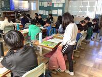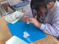 3年生「図工」の様子です。粘土でお弁当をつくっていました。こういった活動は、子供たちは大好きです。「たこさんウインナーができたよ。」「しゃけのおにぎり」といったものから、「かにもできた」「ラーメンもありかな」と・・・。想像を膨らませながらお弁当作りに取り組んでいました。