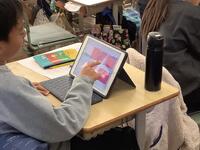 5年生「社会」の様子です。情報について学習しています。みんなでニュース番組の作成に取り組んでいました。日本のニュースや海外のニュース、エンタメから天気予報というようにチームに分かれてニュース番組を作っています。このような活動を通しながら、どのように情報を伝えようとしているのか、学びを深めていきます。