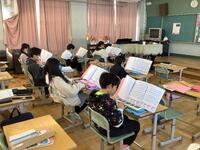 6年生「音楽」の様子です。「和音」の学習です。和音の響きの移り変わりを味わいながら演奏に取り組んでいました。和音ならでは響き、とても素敵ですよね。「雨のうた」の演奏をすることで、和音の美しさを感じる、という学習です。子供たちからは、「演奏が難しい!」とのことです。まずは演奏ができるようになることが目標です。