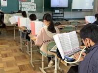 5年生の音楽の授業の様子です。5年生はクラスごとにクリスマスコンサートを担任の先生を招待して開催していました。