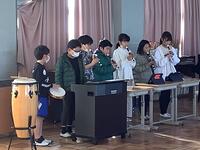 3年生の音楽の授業の様子です。クリスマスコンサートに向けて、「陽気なかじや」の合奏練習に取り組んでいました。
