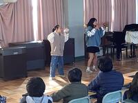 4年生の音楽の授業の様子です。「ウィンターコンサート」と題して、学年合同での発表会をおこないました。