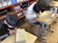 集中して作業に取り組んでいた6年生です。けがには十分注意して、自分の納得できる作品を仕上げてほしいと思います。できあがった文箱を活用するのも楽しみですね。