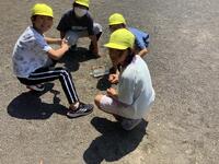 4年生「理科」の様子です。雨水の流れについて学習していました。水たまりになりやすい場所は、どんなところか、ということを考えていました。低い場所が水たまりになりやすいのでは、と予想をたて、実際に確かめていました。