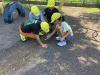 1年生、図画工作「造形遊び 砂や土と仲良し」の様子です。