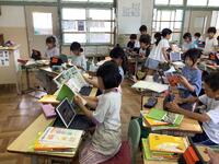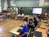 1年生、今日もiPadを使って学習しました。今日は、iPadに入っているアプリ「イーライブラリー」を使いました。自分のペースで学習できるアプリです。国語や算数の学習ができます。「できた!」「家でもやろう!」と楽しみながら学習をしていました。