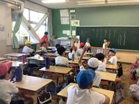 幼稚園、保育園の先生方に来校してもらい、1年生の授業を参観していただきました。1年生はいつも以上に張り切って挙手や発表をしていました。