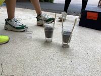 4年生「理科」の様子です。「雨水の流れ」について学習しています。今日は、土の種類によって水のしみこみ方が違うのか?ということを実験して確かめていました。砂場と花壇の土の違いのようです。結果はどうだったでしょう?